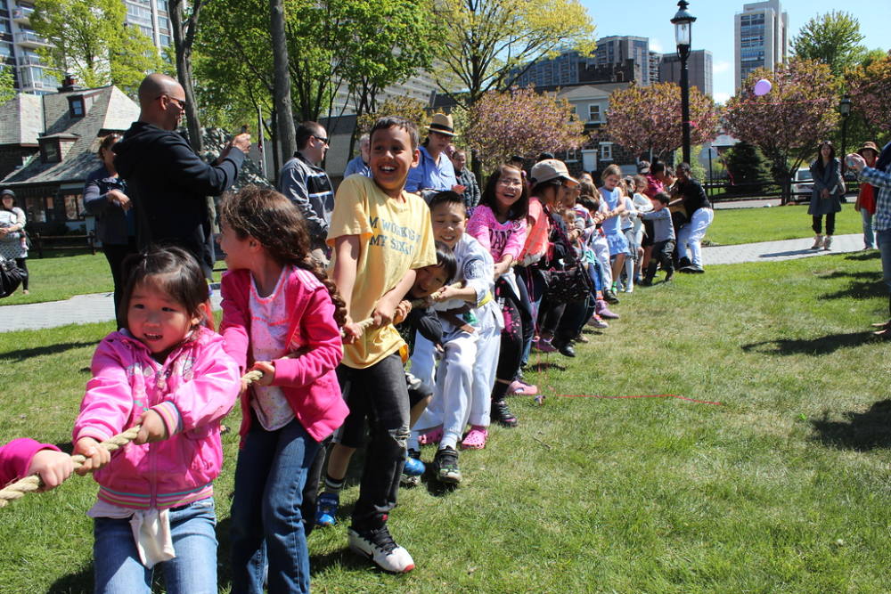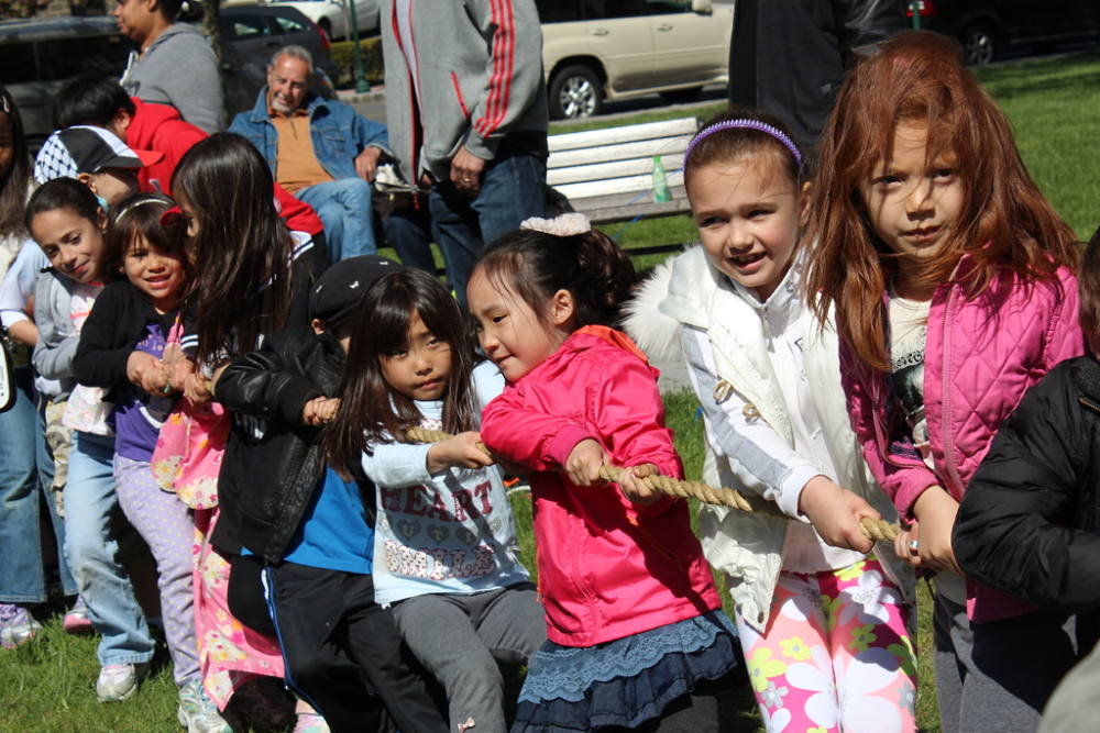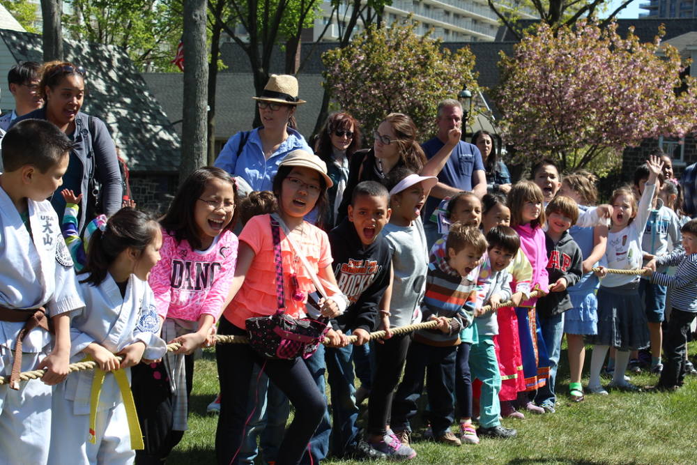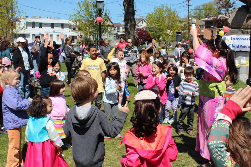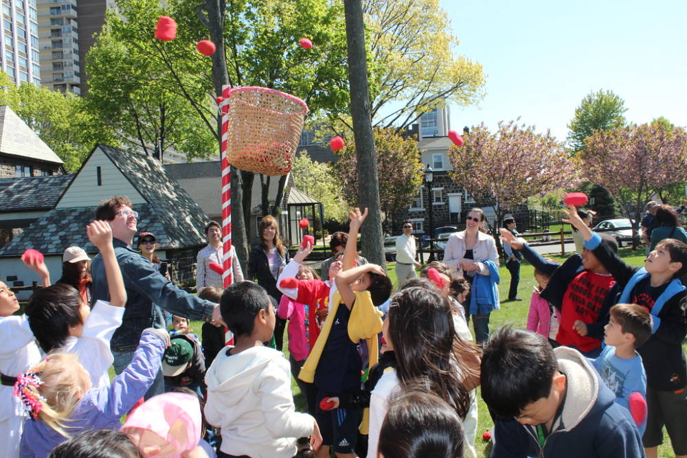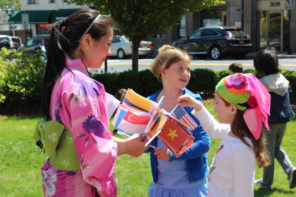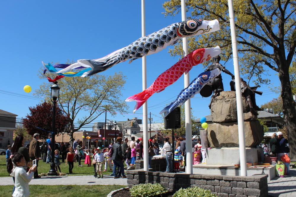 約30年前にレオニアに住んでいたジュン君という日本人の小学生が、日本に帰国になった時に、親友のサンディ君に「宝物」の鯉のぼりセットをお別れの品として渡しました。サンディ君とママのパットさんは、その鯉のぼりを、毎年子どもの日に、フォートリーの市庁舎のポールに飾らせてもらうことにしました。それからずっとパットさんは毎年5月にInternational Children’s Dayを続けました。1996年から「NJ情報誌たんぽぽ」が加わり、イベントも大きく育っていきました。2009年からNJ日本人会の行事として行われています。