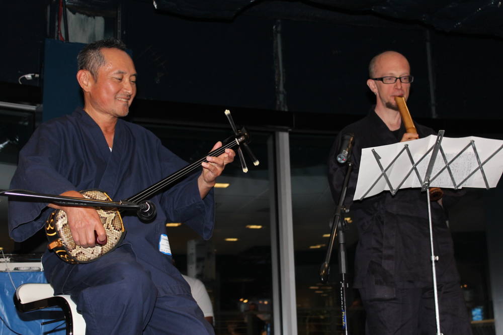 ダイキンマッケイ社のクリス・ペディスン氏の挨拶、在NY日本国総領事館の青柳領事部長の挨拶の後、サニー 落合の三線とグレン・スワンの尺八のコラボを聞きながら、トルコ料理と日本酒や焼酎の絶妙な組み合わせを楽しんだ。また日本酒が大好きという地元のノンジャパニーズの参加も多く、会場は時間を忘れるほど盛り上がり、日本酒を通じてビジネス交流を深めていたようだ。